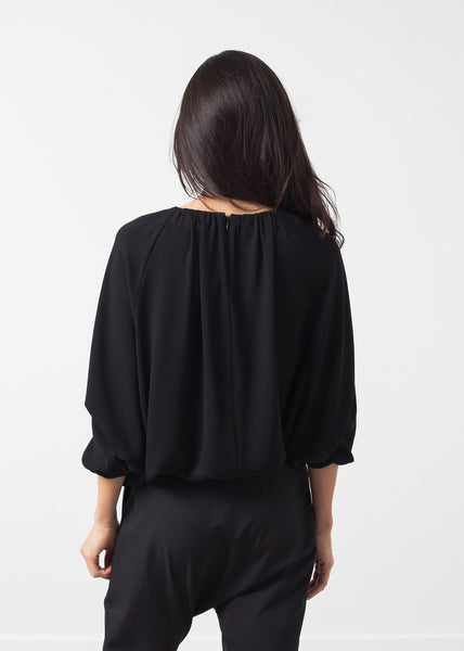 The Bubble Peasant Top from Co. adds some chic fun to your spring selections. Parallel gathers at neck and waist, this piece makes a graceful staple. Dolman sleeves. Hook and eye closure. Invisible back zip closure at center back neck. Color Black. 82% Triacetate, 18% Polyester. Ashley is wearing an X Small.
